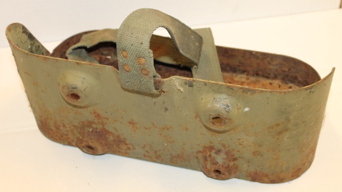 Jerrykanneholder, rusten men hel. Stroppene mangler.