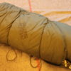 Mange ting er sagt om forsvarets kapok sovepose, men det er nok en grunn til at Forsvaret har benyttet denne i en årrekke. Solid – varm og god pose i tre deler. Yttertrekk – varmepose – innertrekk. Ypperlig allroundpose til lavpris!!! Vekt ca. 4 kg. Her er det poser som har vært i bruk. Kapok er betegnelsen på isolasjonsdelen, som er en nermest en vattpose (mønstersydd og ikke brennbar, kun gløder ved brann) Her er det ikke glidelås, men trepinner med hull, lik knappene i parkasen (døffel coaten).