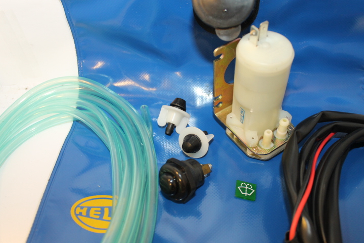 Spyletank(plastpose), festebrakett, motor 24v, slange, 2 dyser, bryter, ledning.