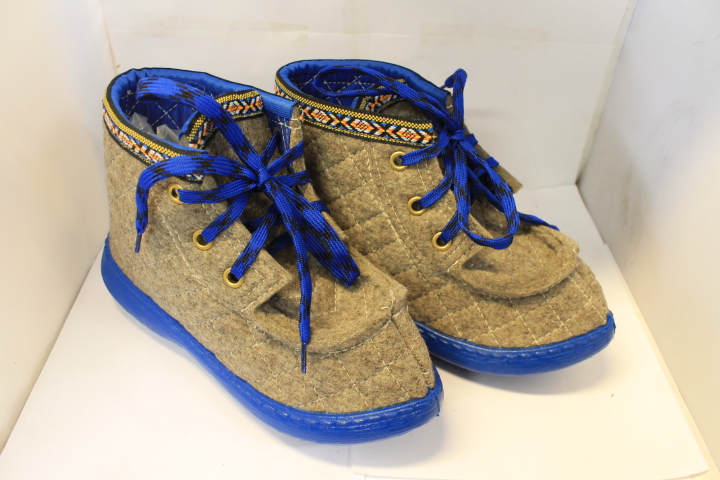 Vær oppmerksom på at begge ullskoene er like, det er ingen høyre- og venstresko, og de kan kjennes stive og ubehagelige første gang du tar dem på. Filten blir mye mykere etter litt bruk, og former seg da etter foten. Det er derfor lurt å bruke skoen på samme fot hele tiden.